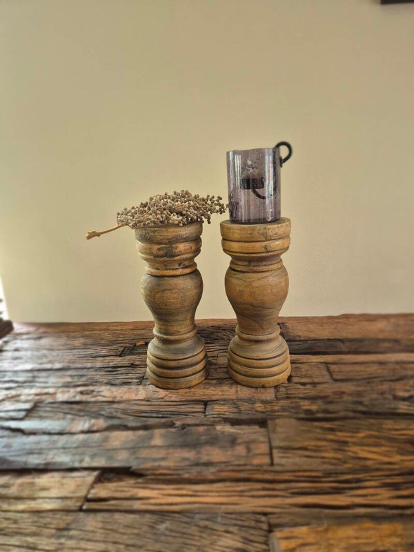 Massief houten kandelaar.